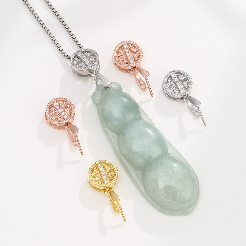 S925 Silver Imitation Pearl Pendant Support DIYClip Accessories Simple Silver Buckle Round Bead Buckle Empty Support Necklace Jade Pendant Buckle Head