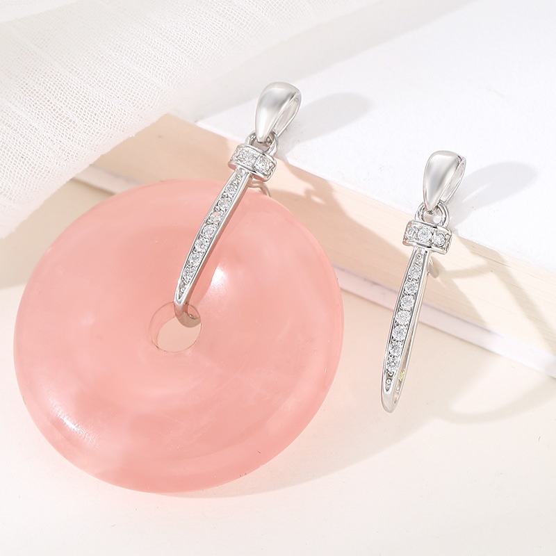 S925 Sterling Silver Plated White Gold Jade Peace Buckle Head Jade Pendant Buckle Crystal Agate Pendant Buckle Sterling Silver Clip Accessories