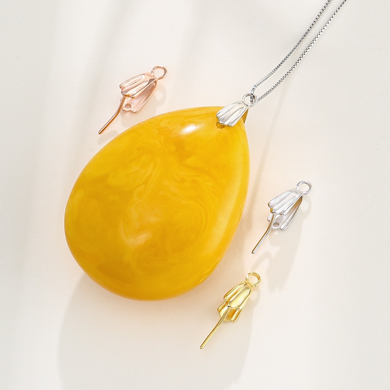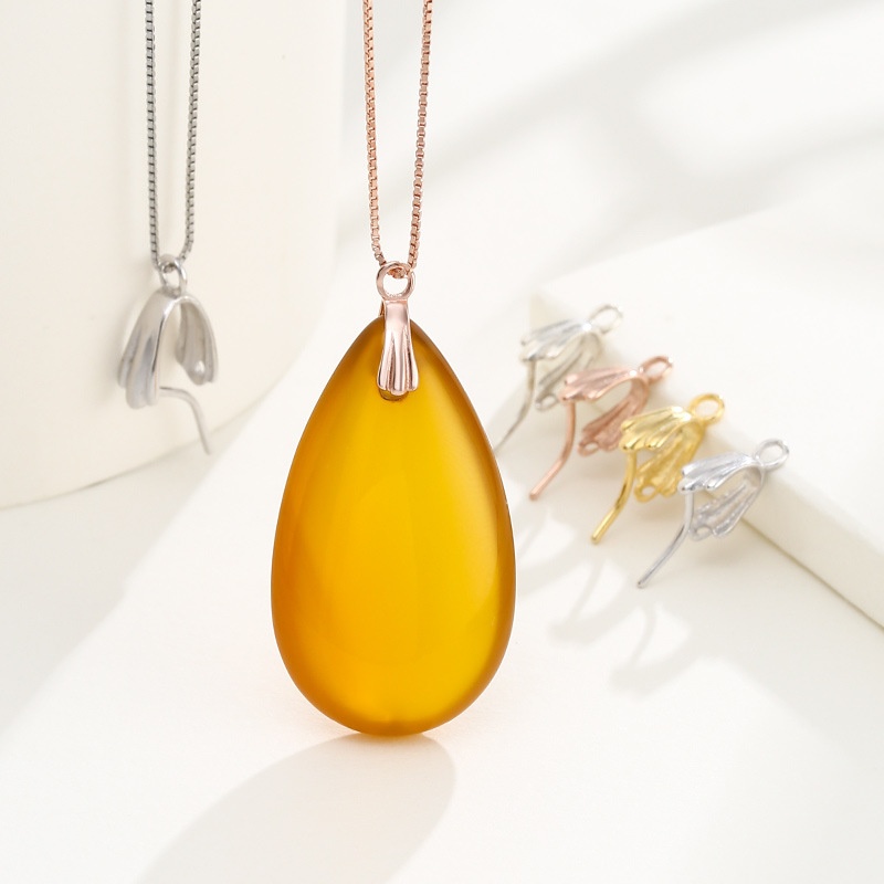 925 Sterling Silver Handmade Diy Accessories Necklace Jade Pendant Pendant Clip Needle Pendant Clip Card Melon Seed Buckle Accessories