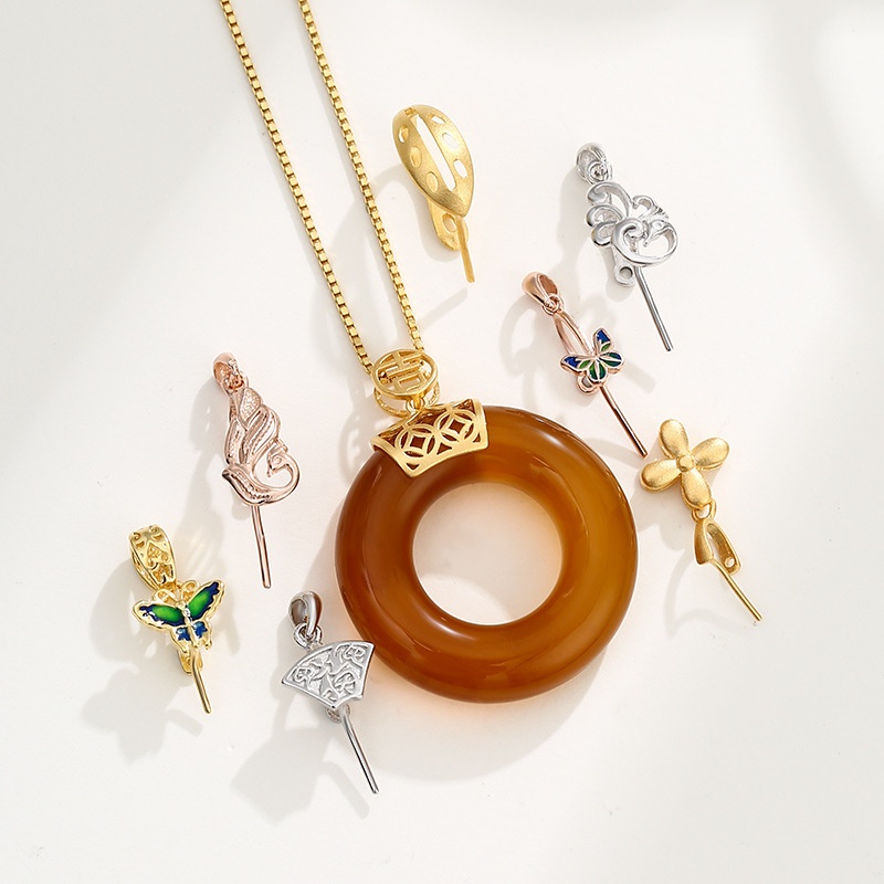 925 Sterling Silver Necklace Accessories Peace Buckle Clip Butterfly Simple Buckle Silver Buckle Diy Jade Amber Pendant Buckle