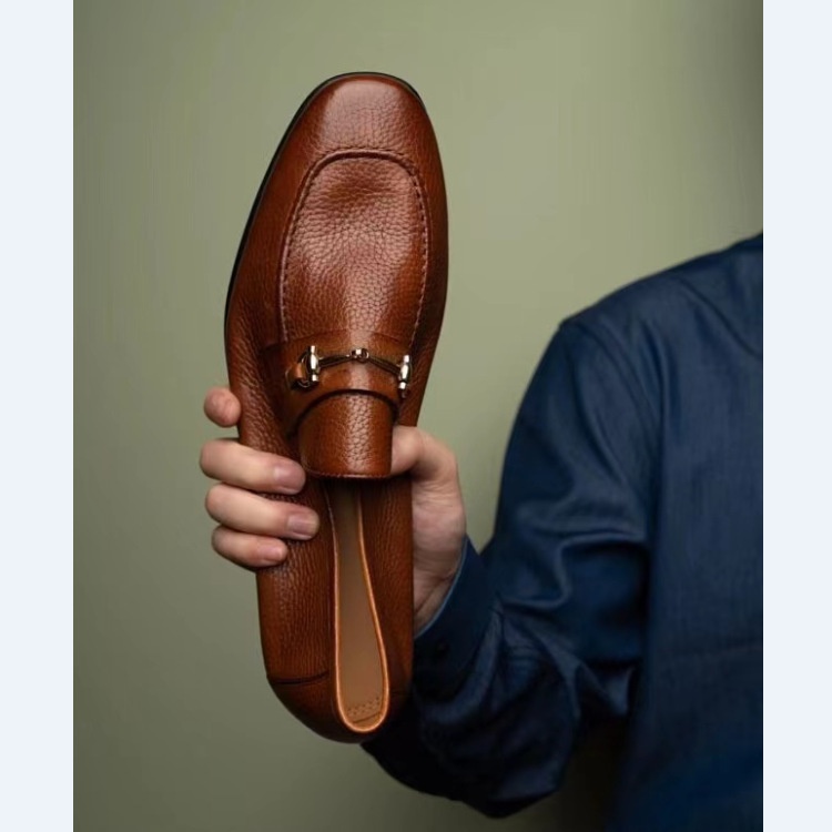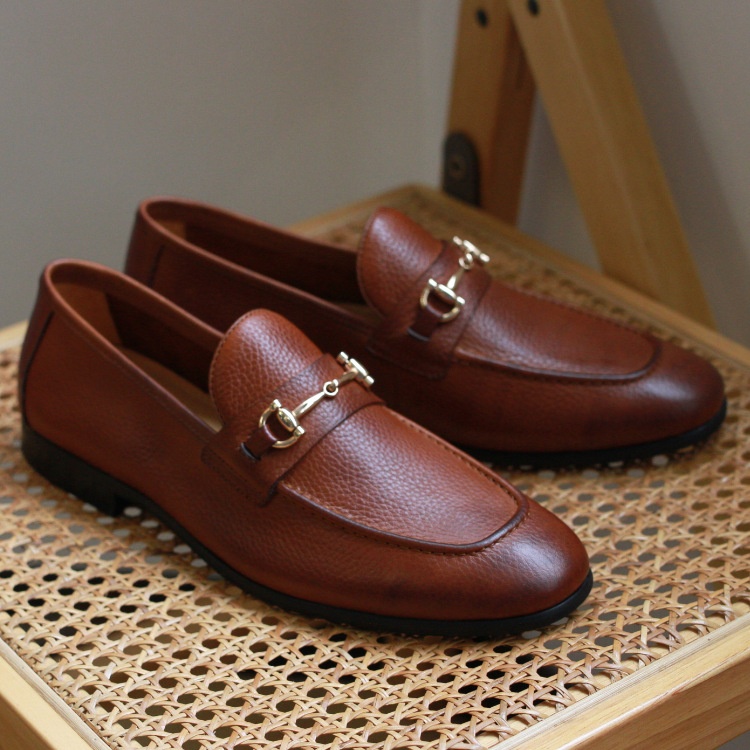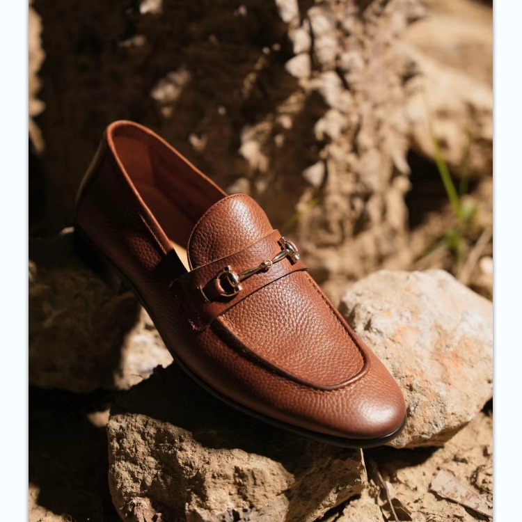 British Style Slip-on Shoes British Casual Italian Style Soft Structure Italian Lychee Pattern Horsebit Suit Loafers For Men