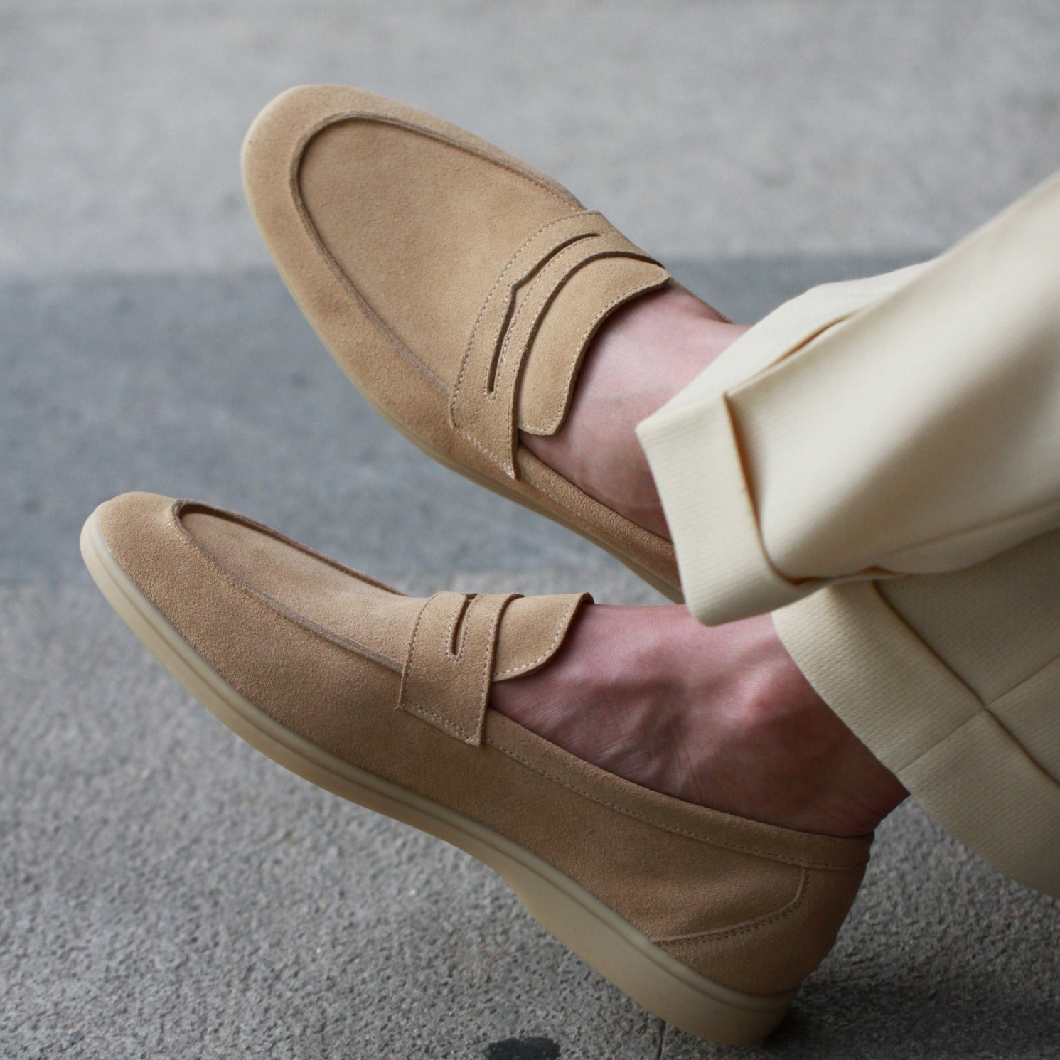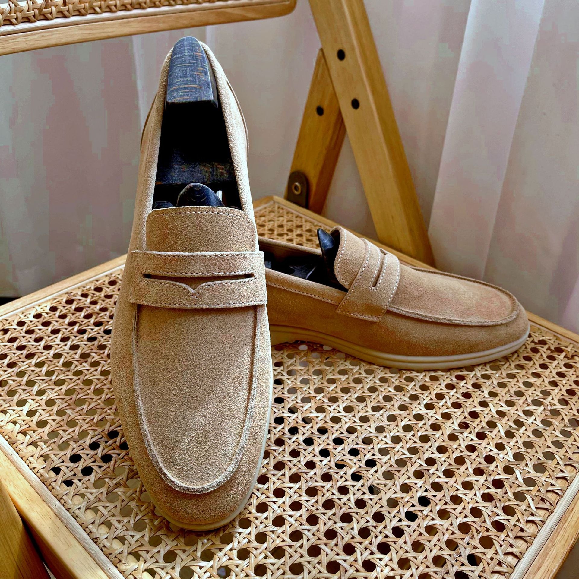 Khaki British Suede Leather Comfortable Versatile Slip-on Suit Loafers