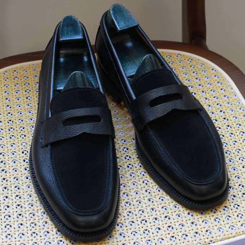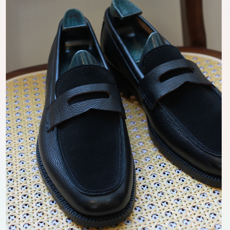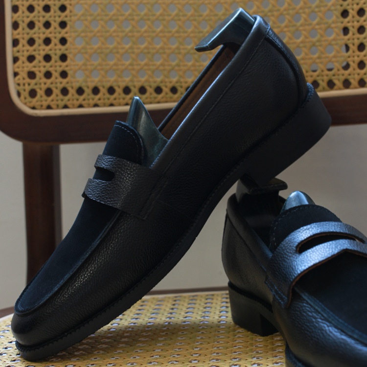 British Retro Penny Loafers Square Toe Leather Shoes Men's Business Casual Cowhide Suede Slip-on Wedding Loafers