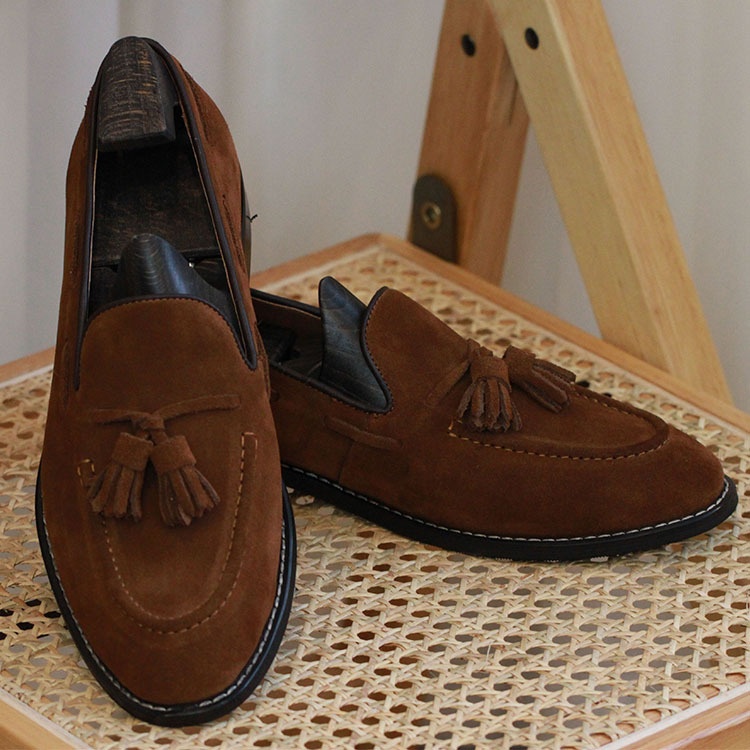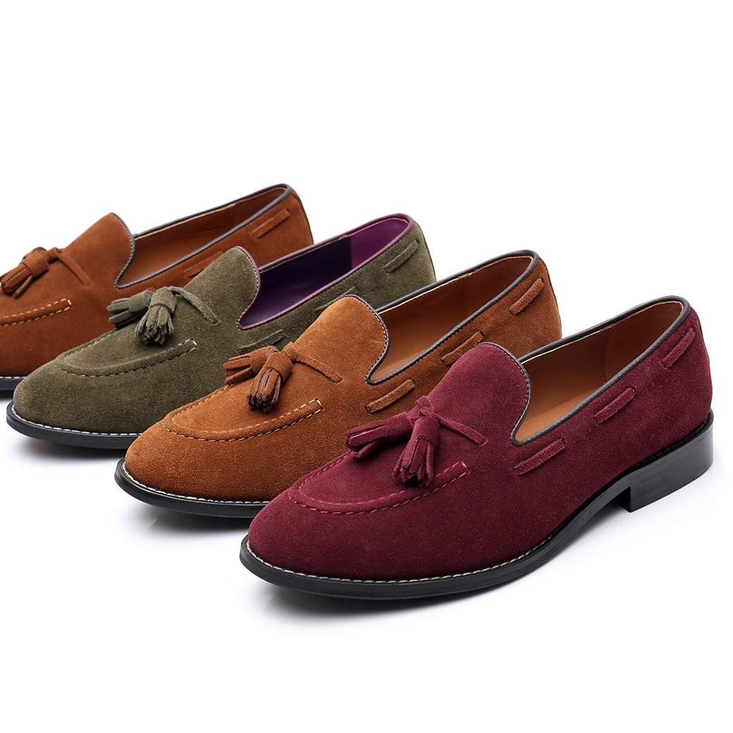 Spring And Summer Brown British Tassel Italian Low-top Suede Slip-on Loafers For Men