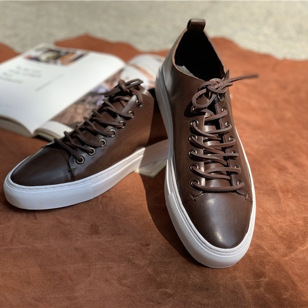 Cowhide Suit Pants Men's Low-top Daily Universal All-match Casual British Style Lace-up Genuine Leather Sneakers Men
