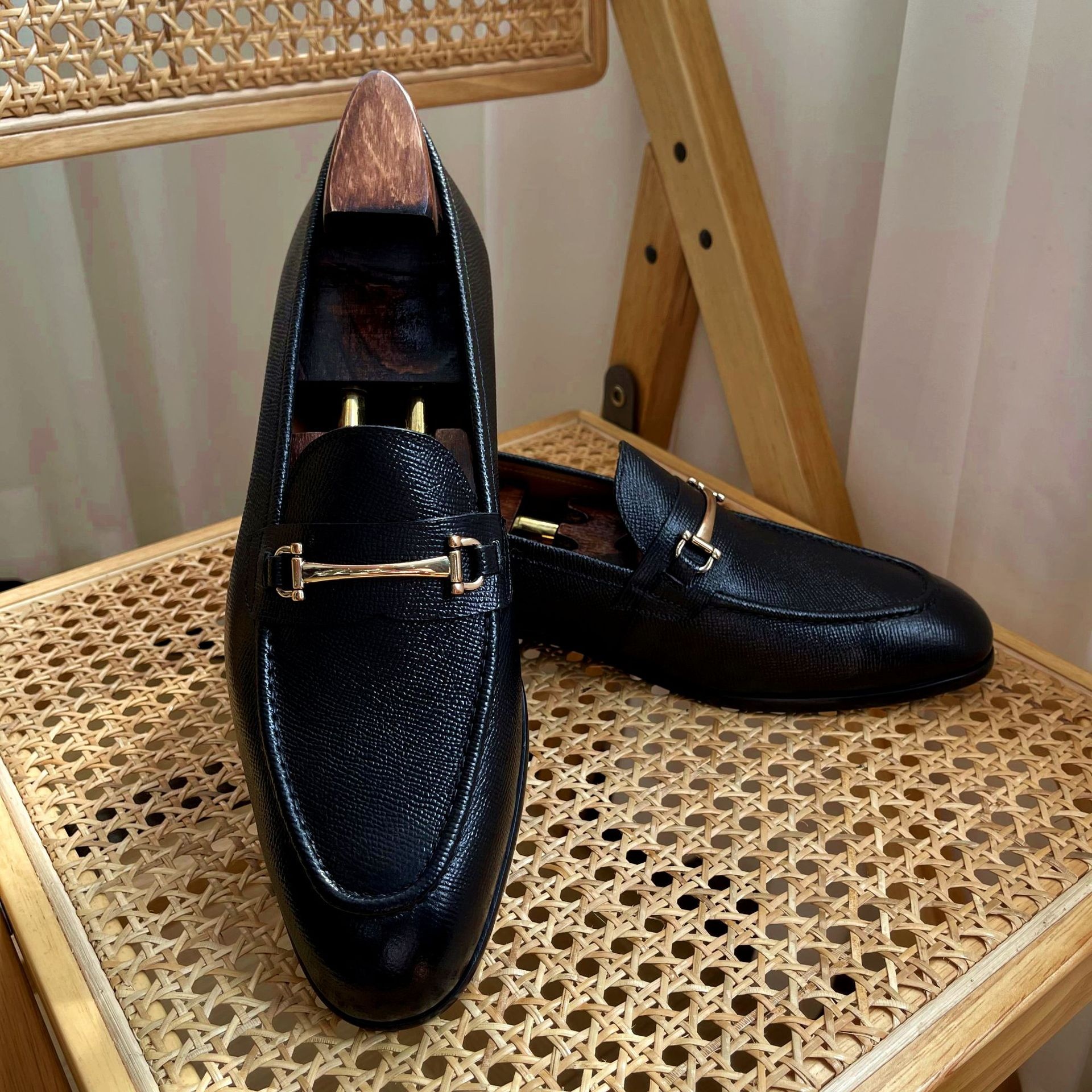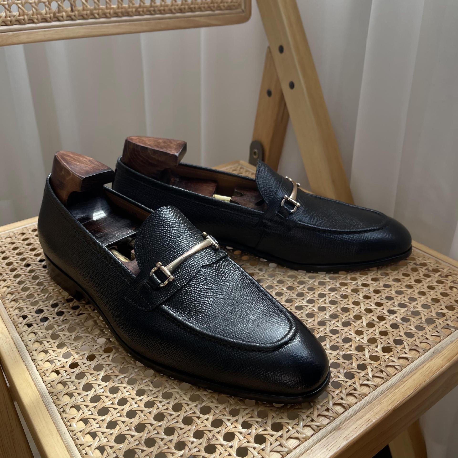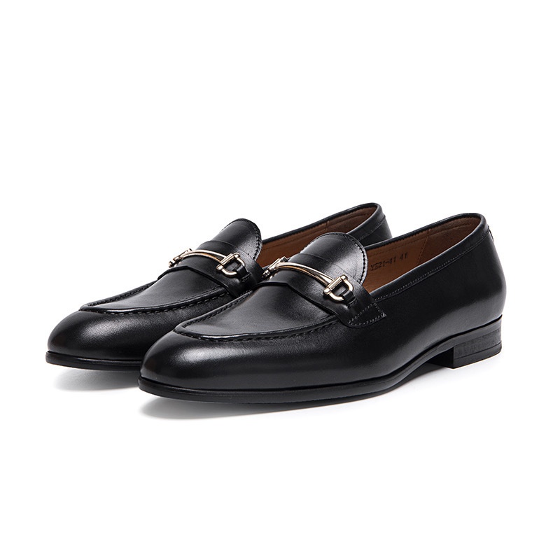 One Pair Of Black British Top Layer Cowhide Comfortable Versatile Slip-on Suit Buckle Loafers