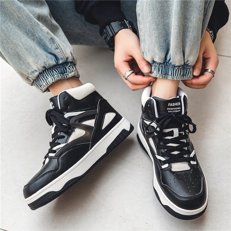 High-top Men's Shoes Autumn Korean Style Versatile Design Niche Casual Shoes Men's Breathable Casual Sports Shoes