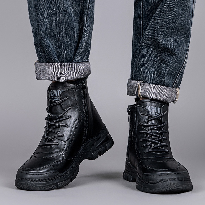 Short-barrel Martin Boots Men's Autumn And Winter Style Short Boots Korean Style Plus Velvet Thick Warm Work Boots