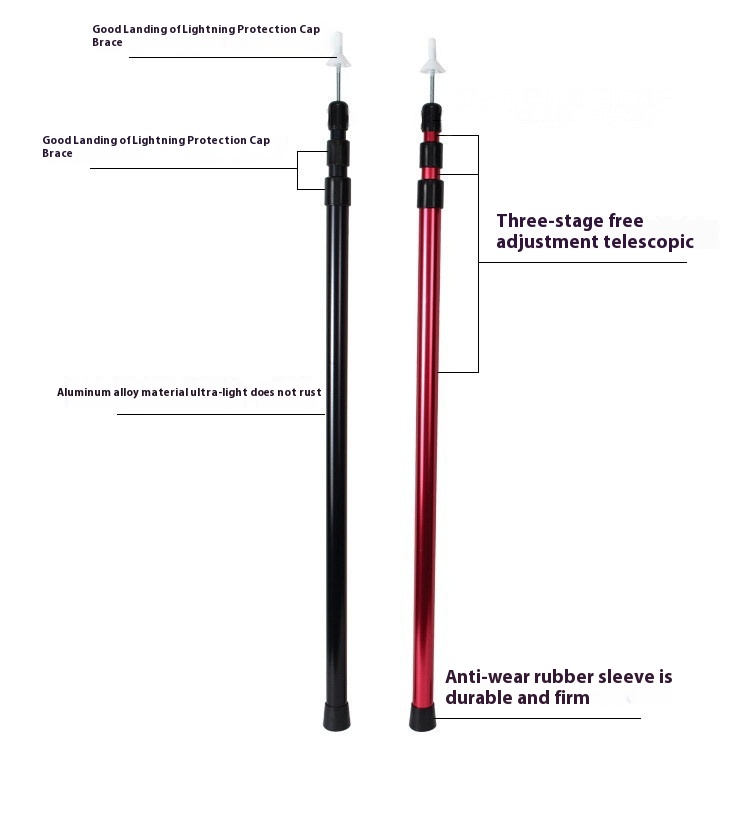 AIRKYEOutdoor Canopy Pole Retractable Aluminum Alloy Tent Support Pole3 Sections2.3m Telescopic Aluminum Tube