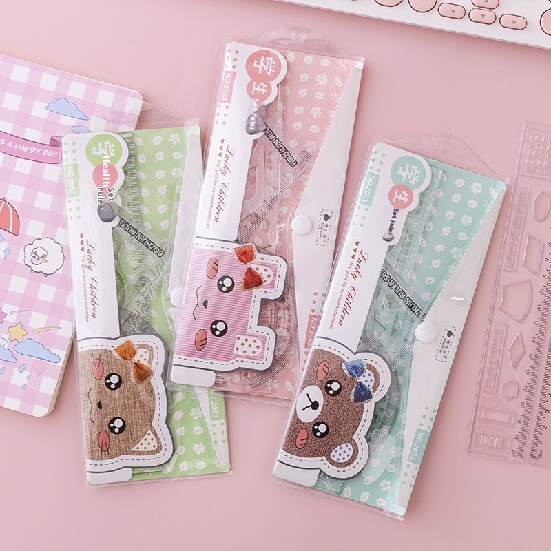 Ruler Set Elementary School Stationery Cute Ruler Set Boys And Girls Children's Learning Supplies Triangle Plate Four-piece Set T