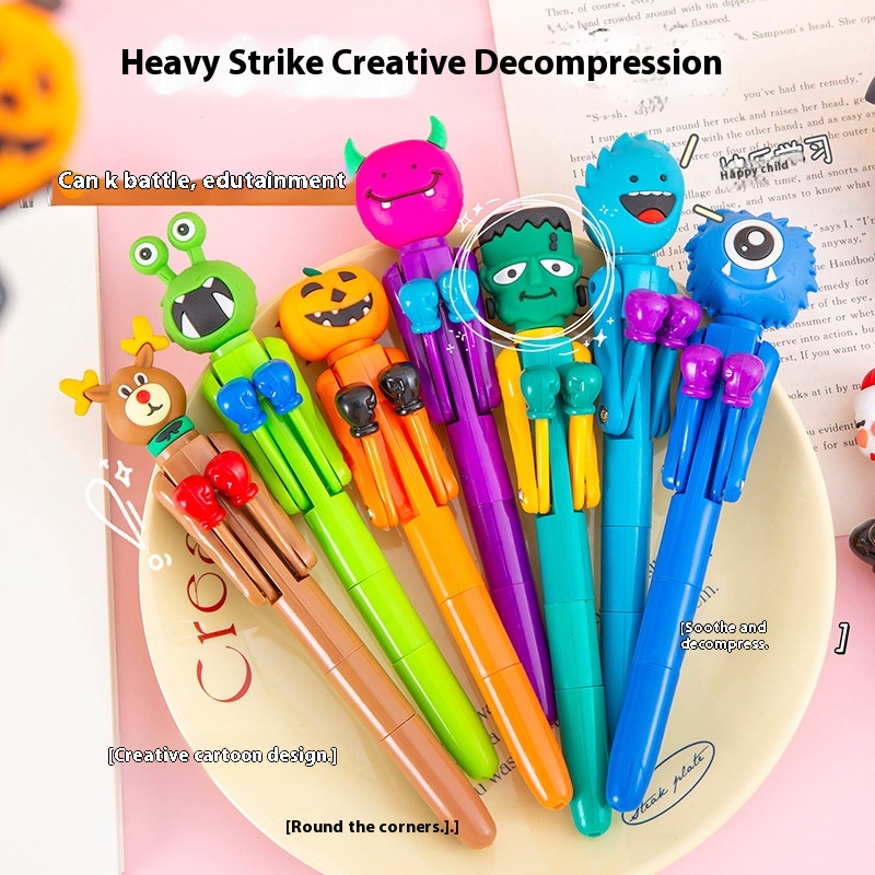 Linlang Head Boxing Pen Creative Decompression Pen Primary School Students Cute Trick Decompression Toy Pen Boy Student Gift