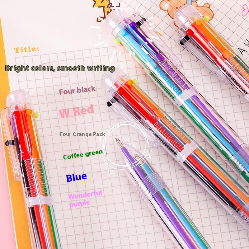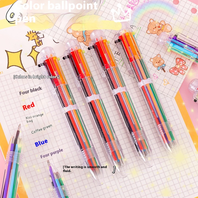 Creative Transparent6-color Ballpoint Pen Cute Student Stationery Multi-color Pen Medium Oil Pen Color Ballpoint Pen