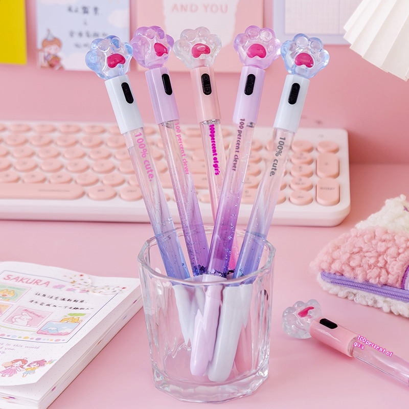 Girly Cat Claw Luminous Gel Pen Cute Creative Quicksand Light Pen Children Student Stationery Pen Water Pen