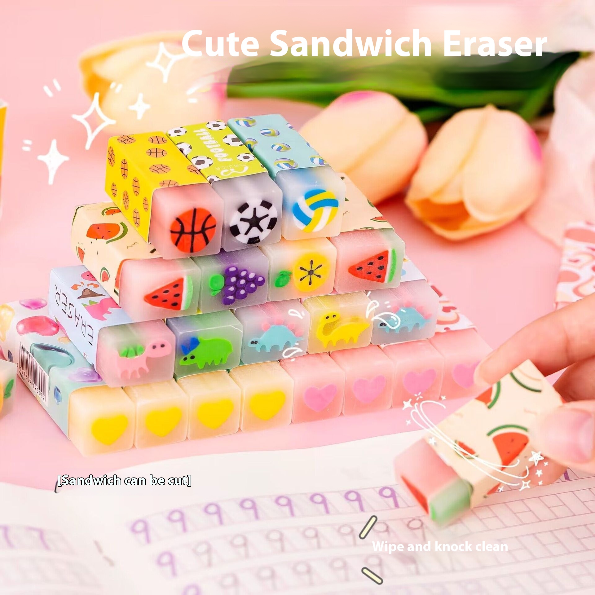 Creative Sandwich Eraser Elementary School Students Transparent Light Fragrance Special Cute Jelly Random Cut Shape Pencil Eraser T