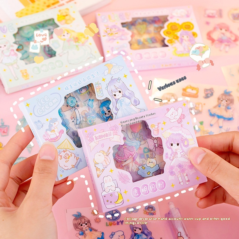 Xufeng Handbook Sticker Box Set Frosted Waterproof Stickers Cute Gift Box Water Cup Stickers Decorative Stickers
