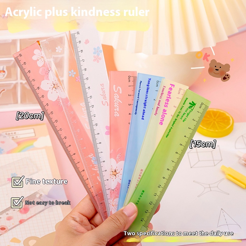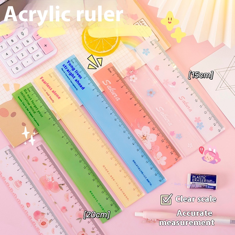 Transparent Ruler Thickened Ruler Primary School Student Ruler Multifunctional Special15/20 Children Cute Cartoon Plastic
