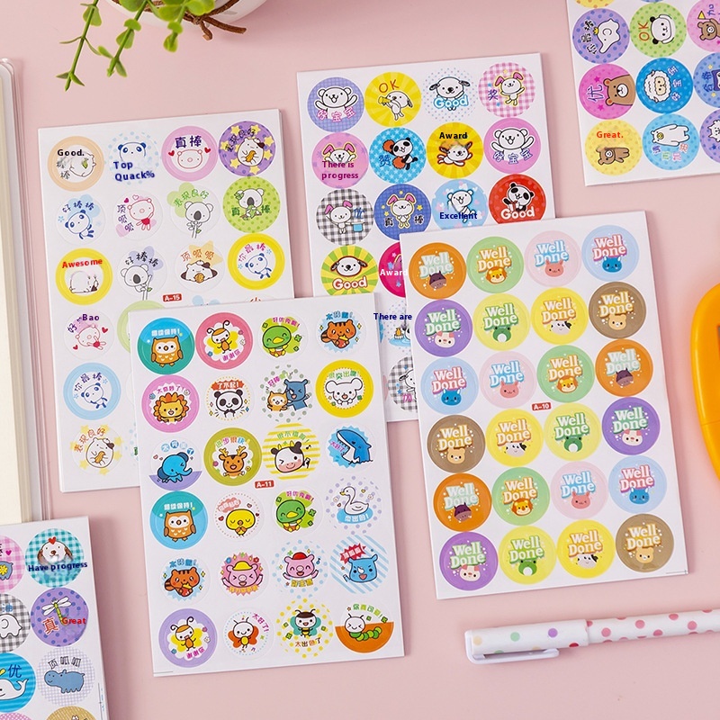 Children's Reward Stickers Praise Stickers Primary School Students Kindergarten Small Red Flower Five-pointed Star Thumbs Up Stickers Self-discipline Points