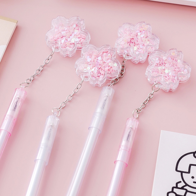 Korean Style Pink Flower Pendant Gel Pen Cute Small Fresh Black0.5 MMSignature Pen Fountain Pen Student Stationery Gift