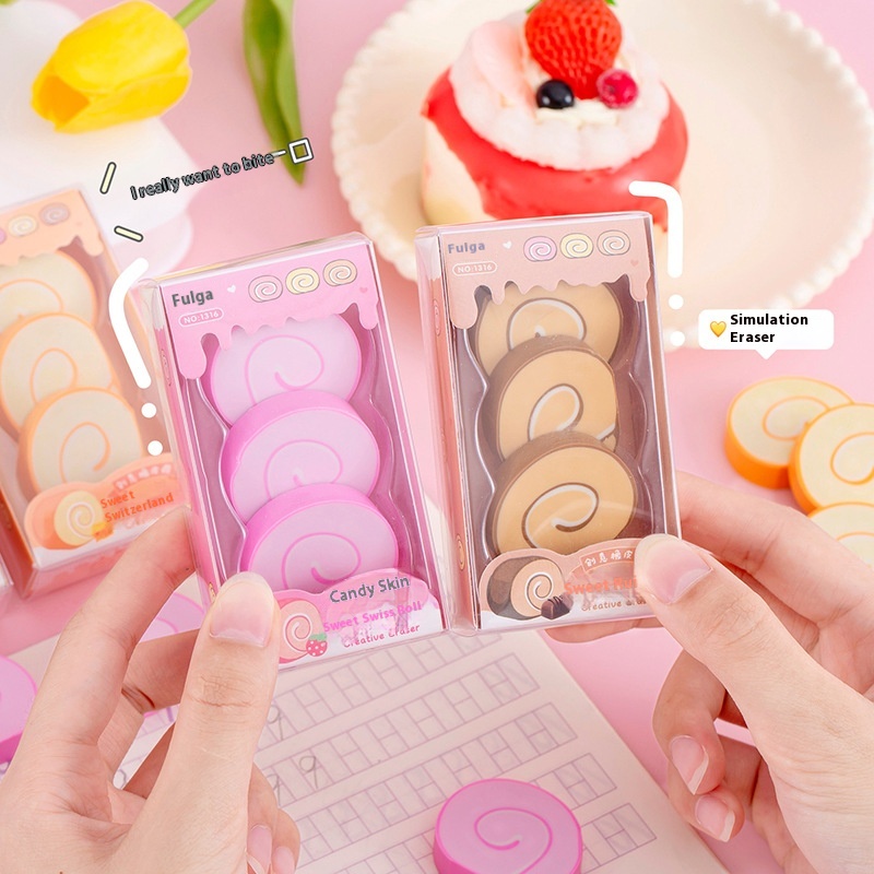 Swiss Roll Simulation Eraser Eraser Students Write And Modify To Wipe Clean Less Crumbs Box Cute Shape