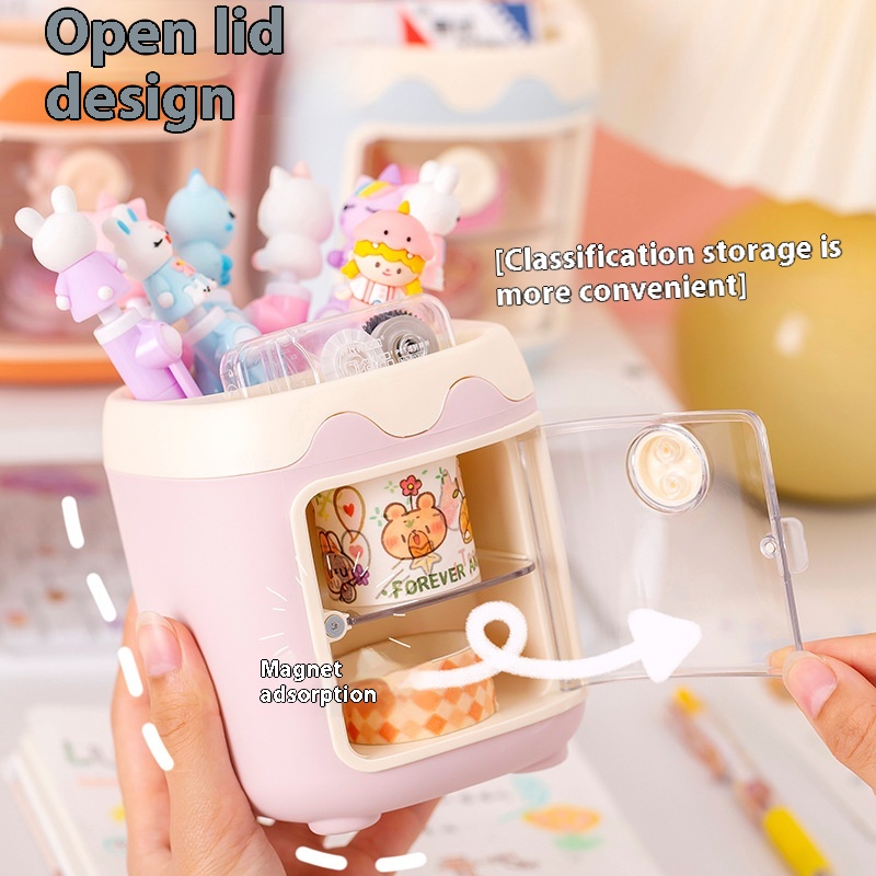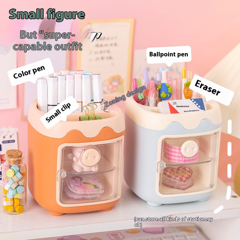 Creative Cartoon Multi-grid Pig Pen Holder Student Girl Heart Desktop Stationery Cute Multi-function Storage Box T