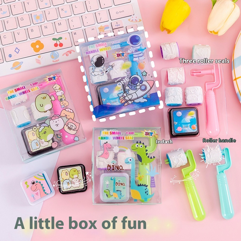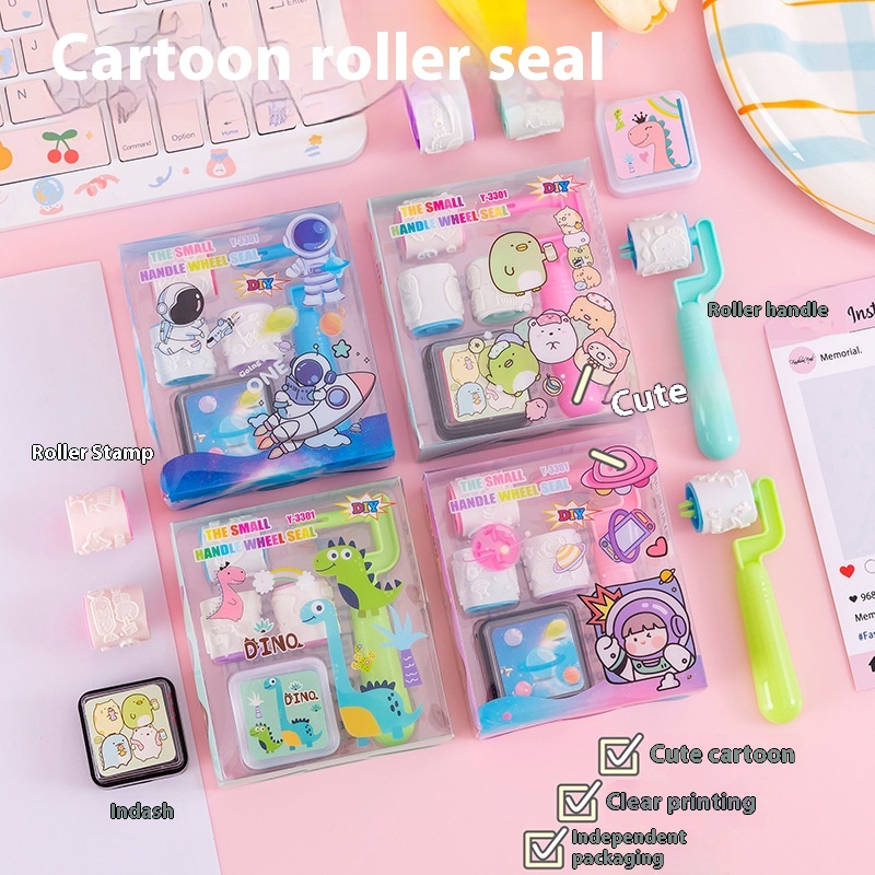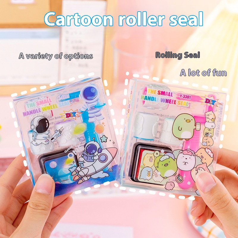 Cute DYICartoon Animal Roller Seal With Ink Pad Student Kindergarten Children Prize Stationery Seal Gift