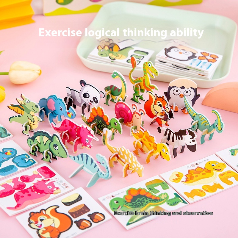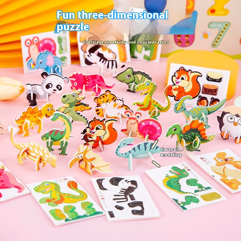 Children's Paper Dinosaur3 DPuzzle Cute Cartoon Dinosaur Shaped3 DPuzzle Toy Accessories Gift