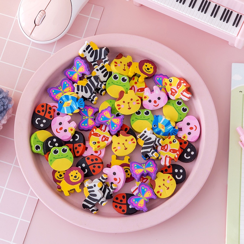 Children's Eraser Cartoon Animal Shape Eraser Primary School Student Learning Supplies Kindergarten Prize50 Pack T