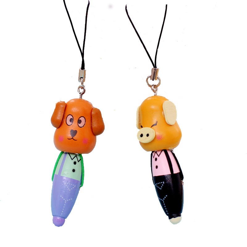YZ022 Wooden Cartoon Animal Portable Pen Wooden Short Pen/Mobile Phone Pendant/Cartoon Wooden Ballpoint Pen Stationery