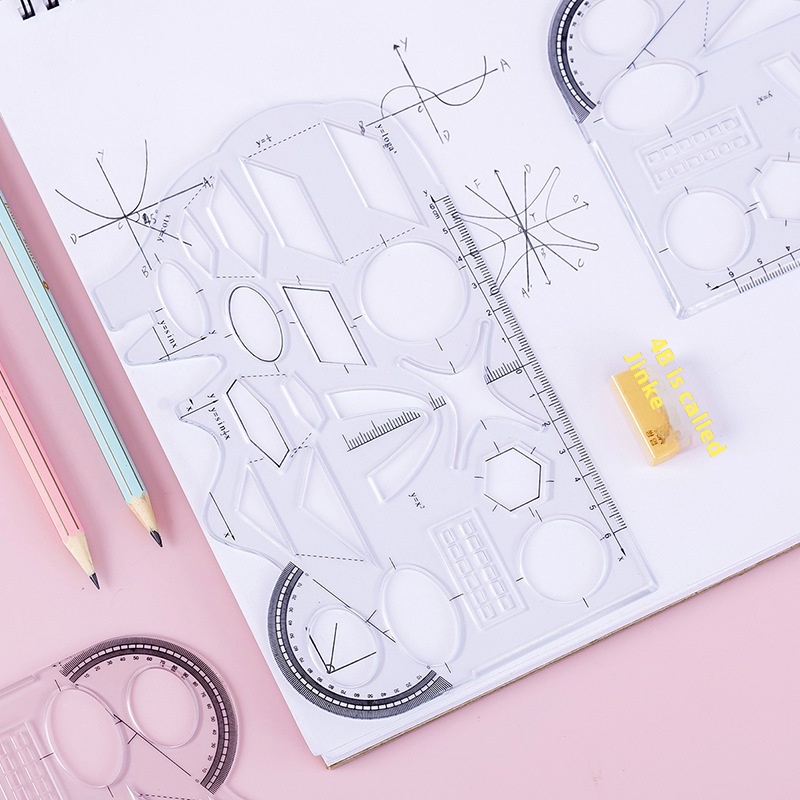 Multifunctional Ruler Geometry Function Drawing Ruler Elephant Junior High School Mathematics Drawing Ruler Ellipse Ruler Student Stationery T