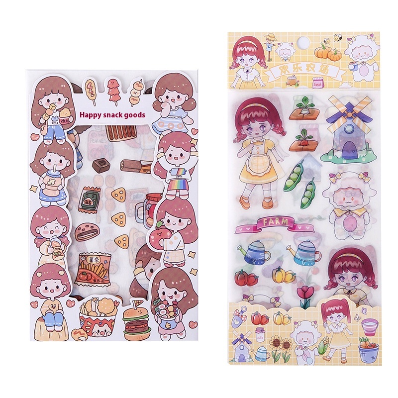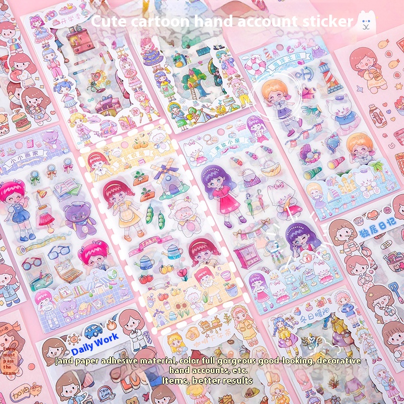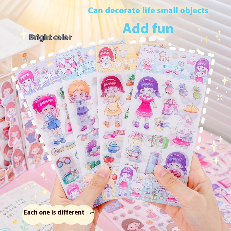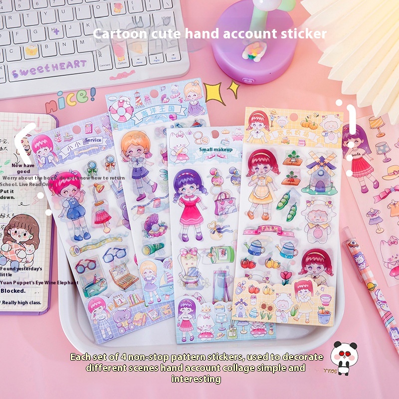 Cartoon Creative Girl Stickers4 Pieces Into The Student Cute Hand Book Material Stickers Children Creative Diy Decorative Stickers