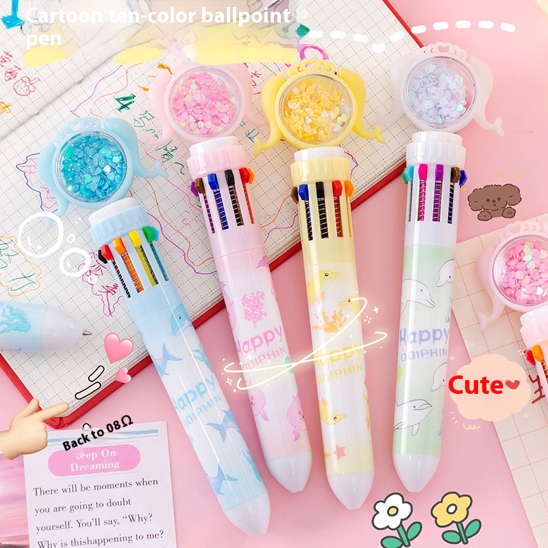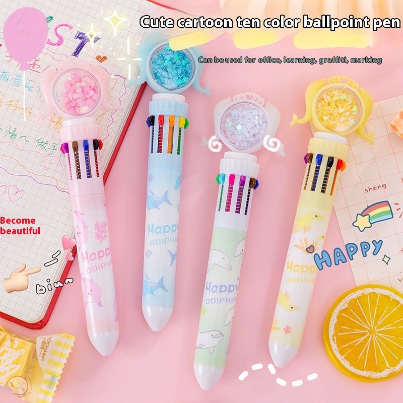 Cartoon Creative Multi-color Pen Girly Heart Mermaid Series Ten-color Pen Student Stationery Gift Notebook Material