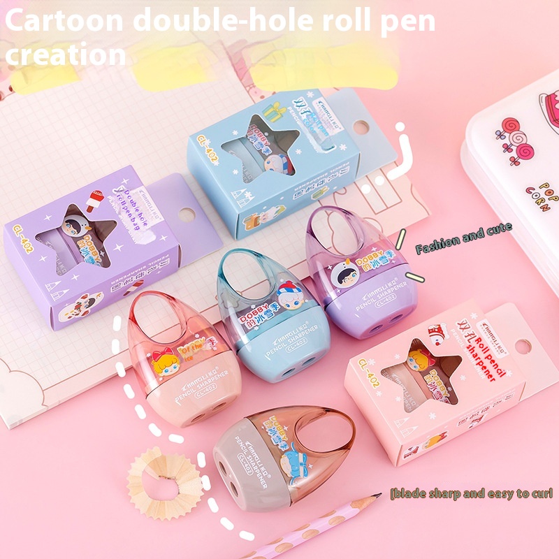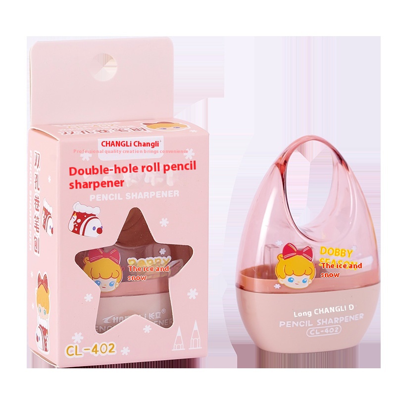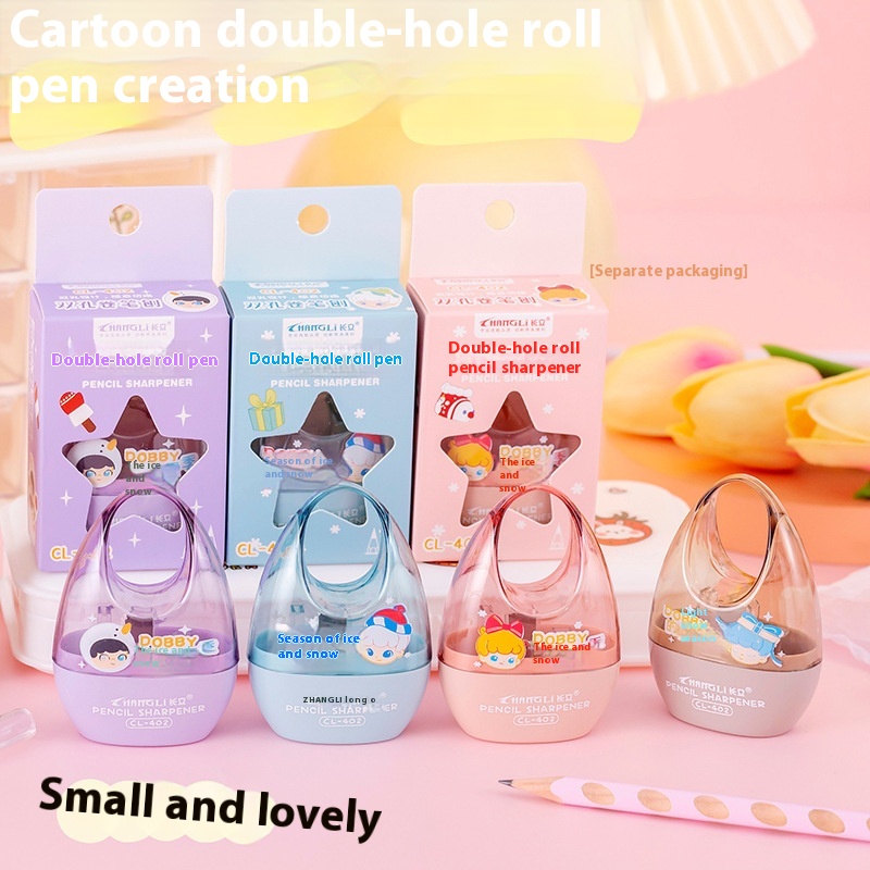Creative Children's Primary School Pencil Sharpener Stationery Gift Cartoon Double Hole Shape Pencil Sharpener Compact Manual Pencil Sharpener
