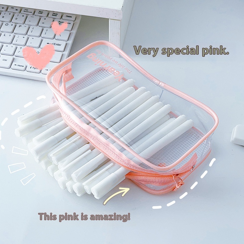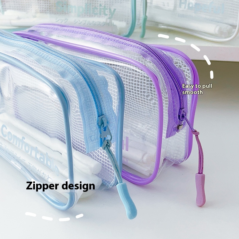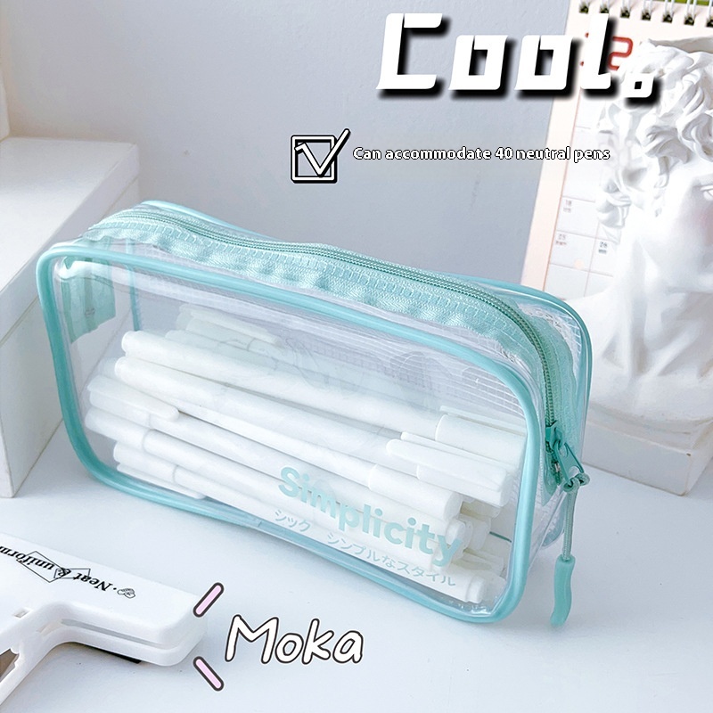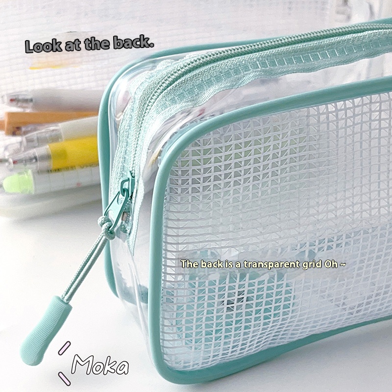 Simple Pencil Bag Grid Korean Transparent Large Capacity Men And Women Small Fresh Stationery Pencil Case Storage Bag