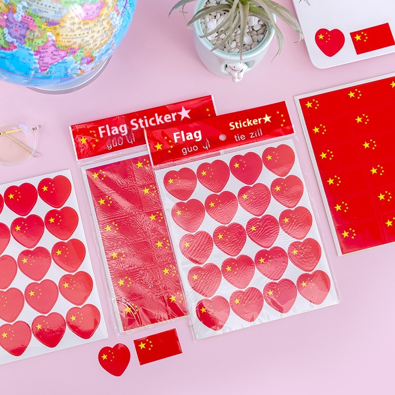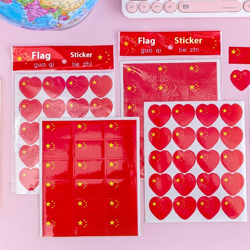 Chinese Flag Stickers Face Stickers Red Flag National Flag Stickers National Flag Five-star Red Flag Love Kindergarten Student Patriotic Stickers
