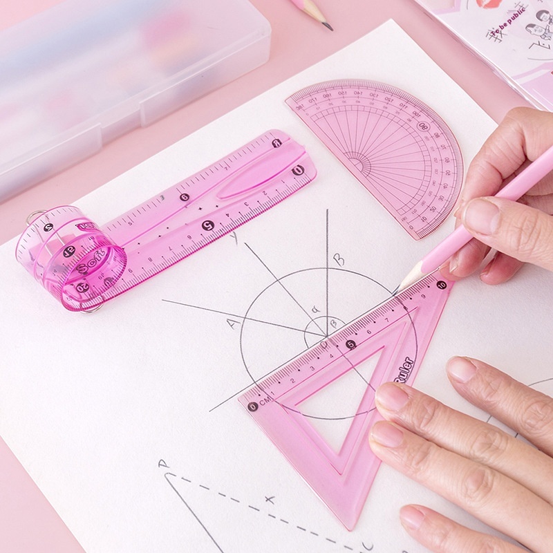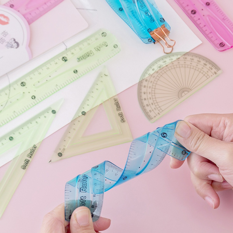 Soft Ruler Student Stationery Set20cm Soft Ruler Primary School Students Triangle Ruler Protractor Four-piece Set