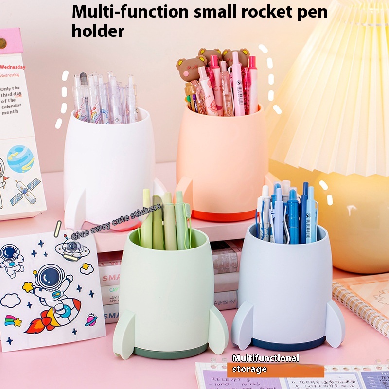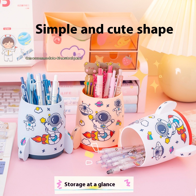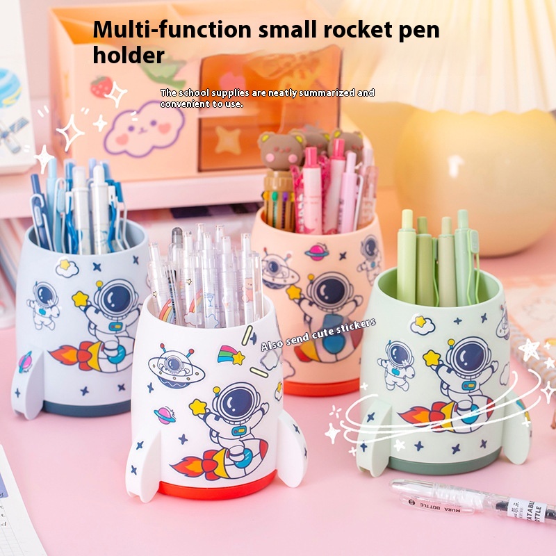 Creative Rocket Pen Holder Children Astronaut Stationery Pencil Case Primary School Students Junior High School Desktop Storage Box Gift