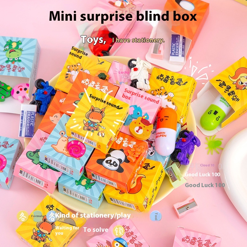 Children's Blind Box Toys Pencil Sharpener Stationery Eraser Surprise Small Blind Box Tumbler Kindergarten Prize Gift