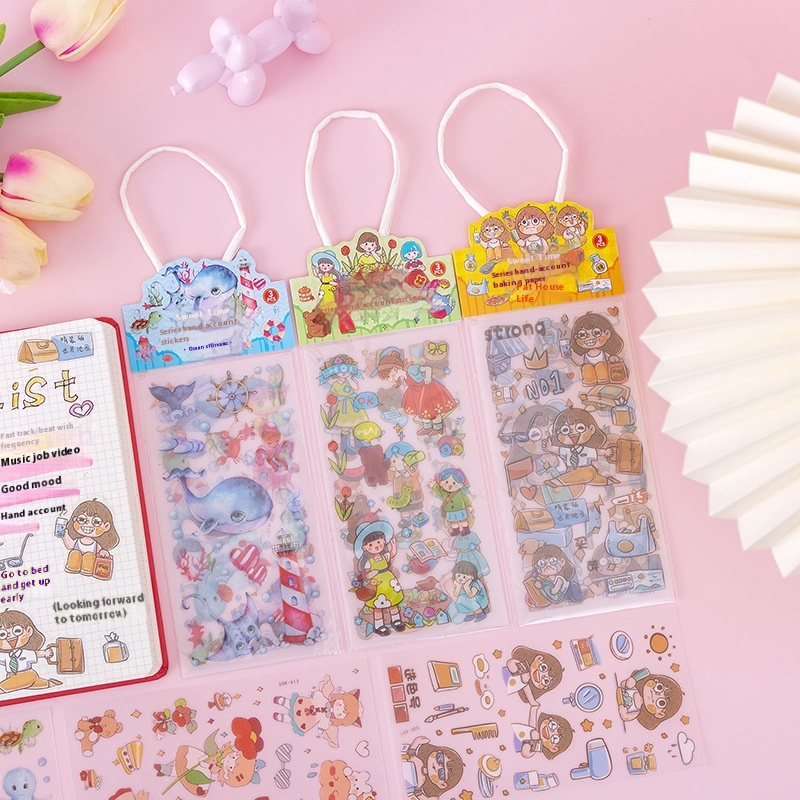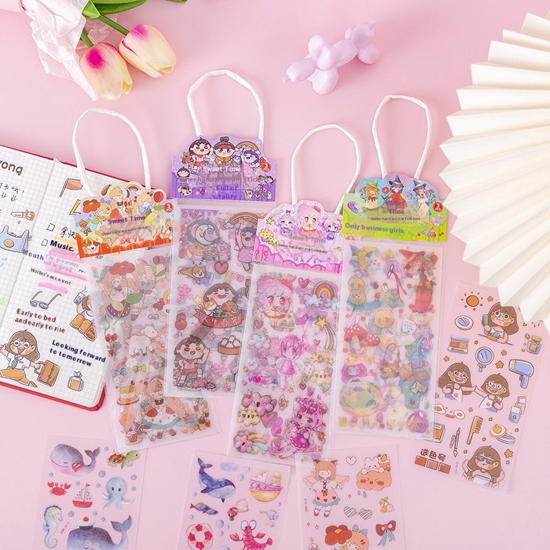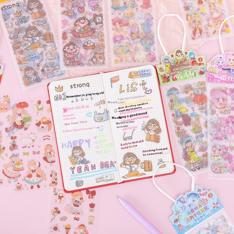 Anime Cartoon Girl Notebook Stickers Handbag Gold-stamping PETStickers Sweet Time Postcard Water Cup Stickers