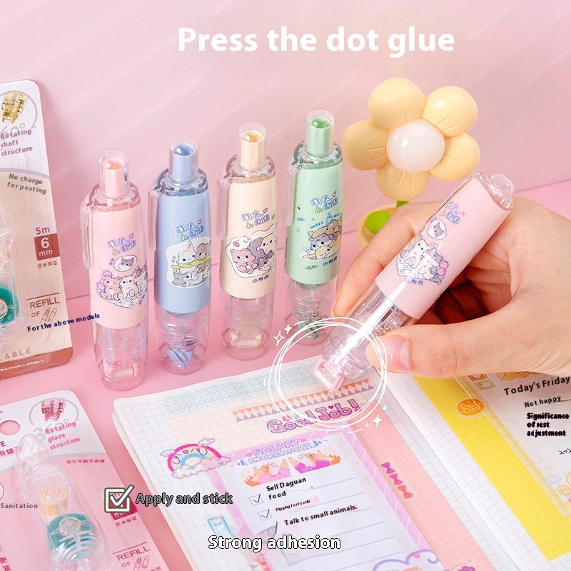 Press-to-dispense Glue Correction Tape Pen-shaped Double-sided Adhesive With Replaceable Core For Children's Handmade Notebooks With High-value Products