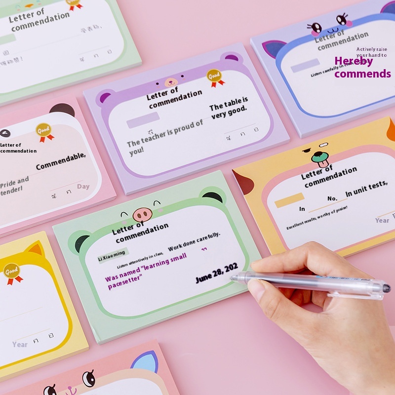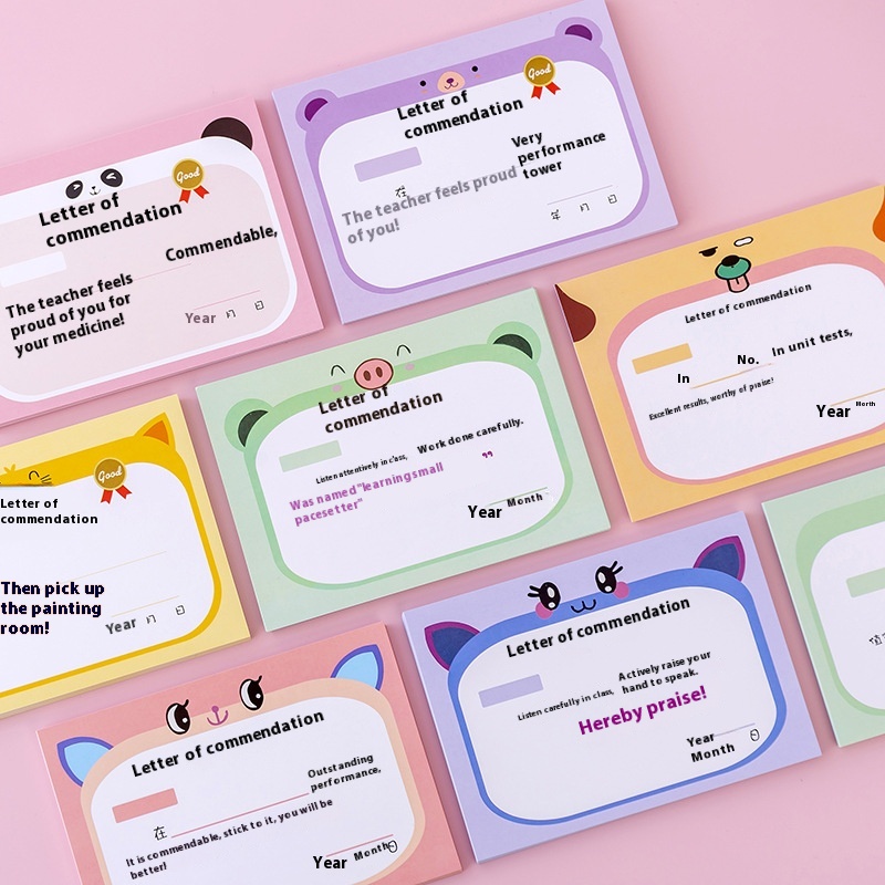 Reward Small Award Certificate Cute Praise Letter First Grade Kindergarten Small Prize Reward Points Card Teacher Universal50 Pieces