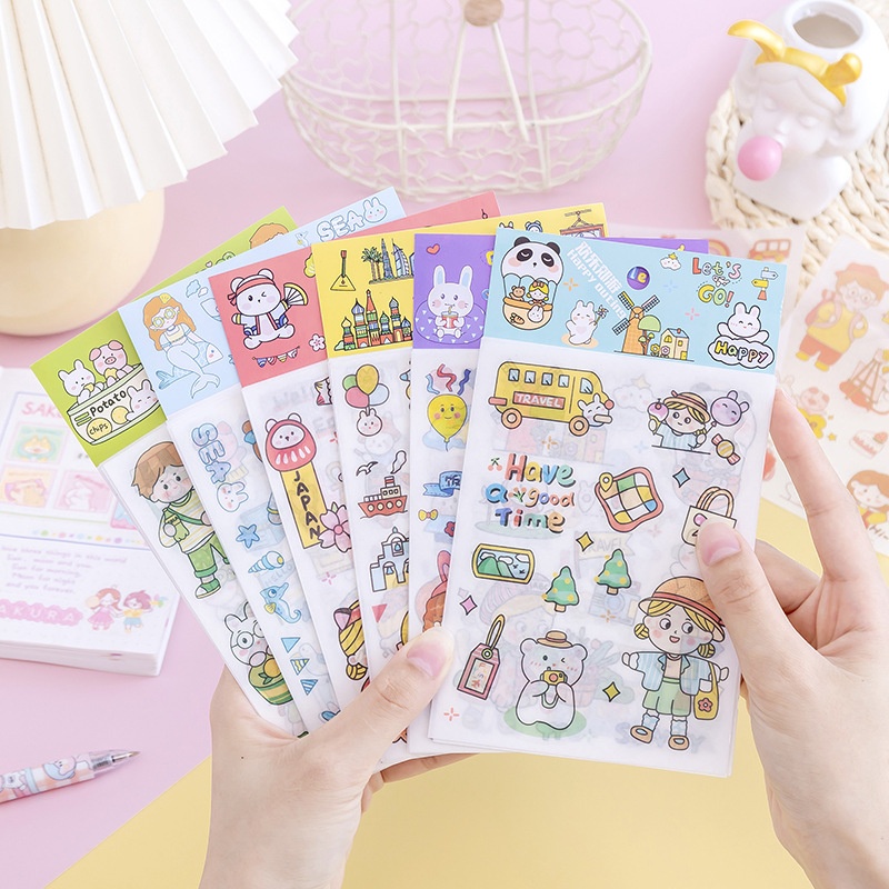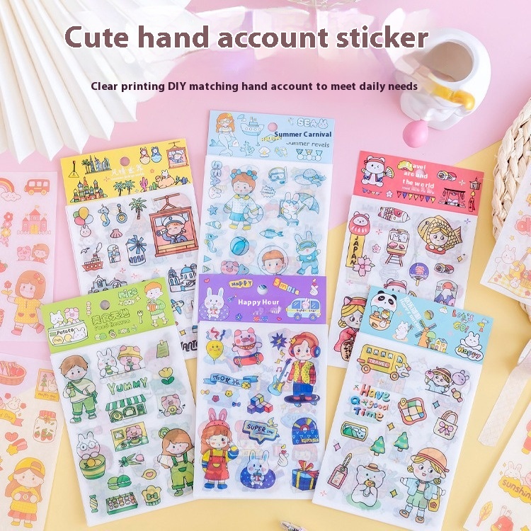 Korean Cartoon Animal Transparent Pvc Stickers DIYHand Diary Decoration Material Stickers Baby Growth Animation Stickers