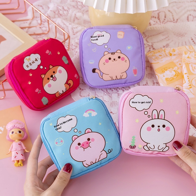 Style Aunt Towel Sanitary Napkin Storage Bag Portable Large Capacity Cute Cosmetic Bag Menstrual Bag Change Storage Bag