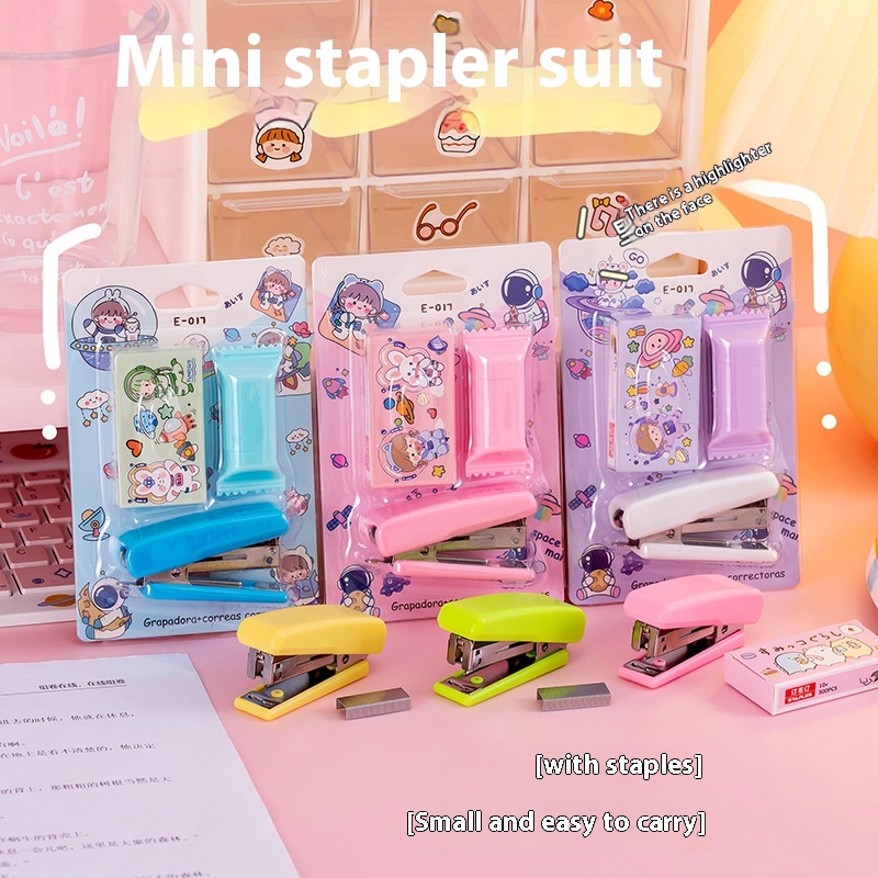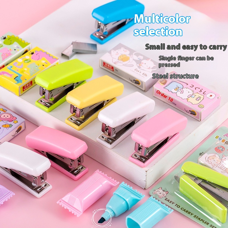 Mini Portable Cute Stapler Set Student Stapler Binding Student Stationery Girly