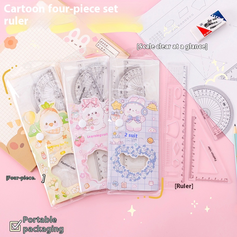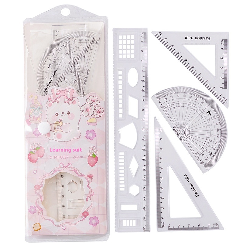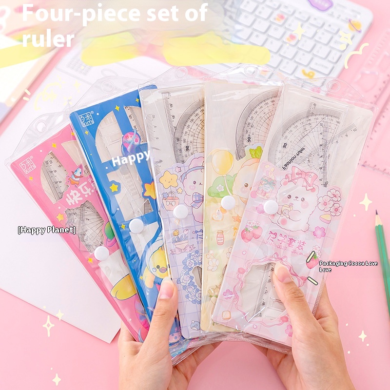 Cartoon Creative Ruler Set Student Stationery Drawing Drawing Ruler Set Exam20cm Ruler Triangle Plate Gift T