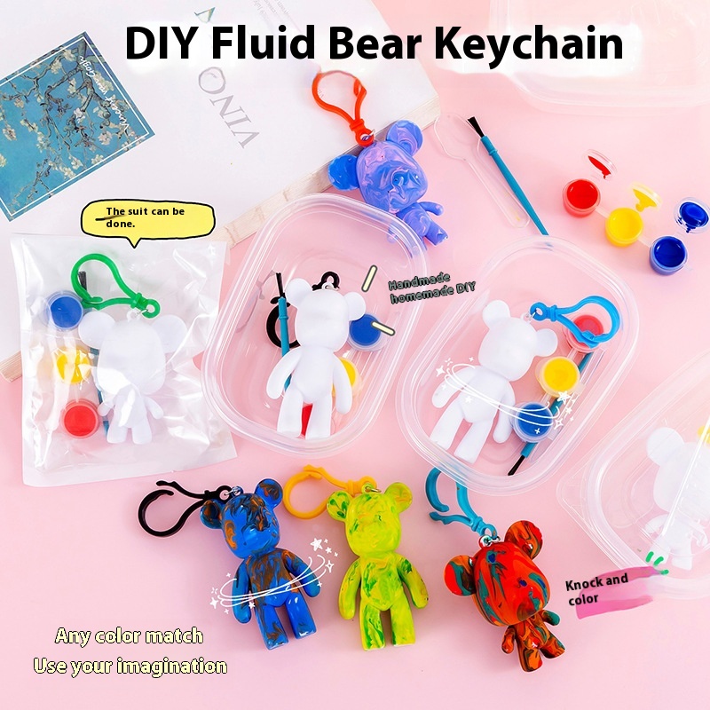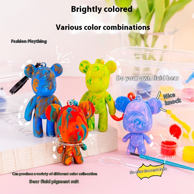 Fluid Bear White Embryo Paint Painting DIYHandmade Violent Bear Stall Keychain Graffiti Student Gift