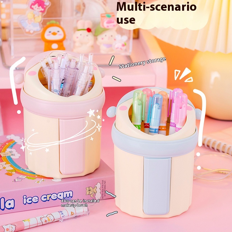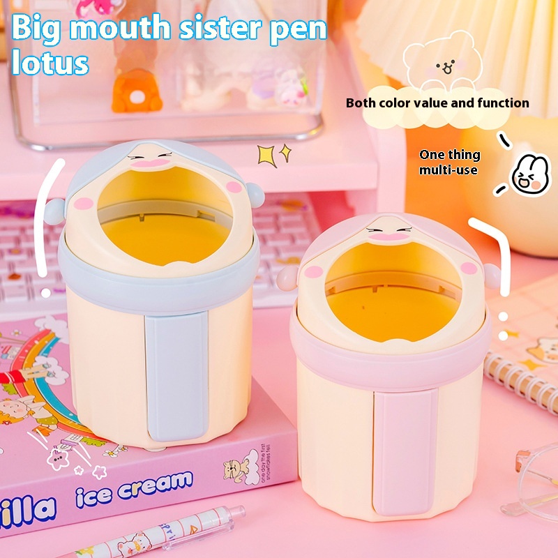 Cute Cartoon Pen Holder For Girls Desktop Large Capacity Pen Barrel Japanese Creative Student Office Stationery Storage Box T