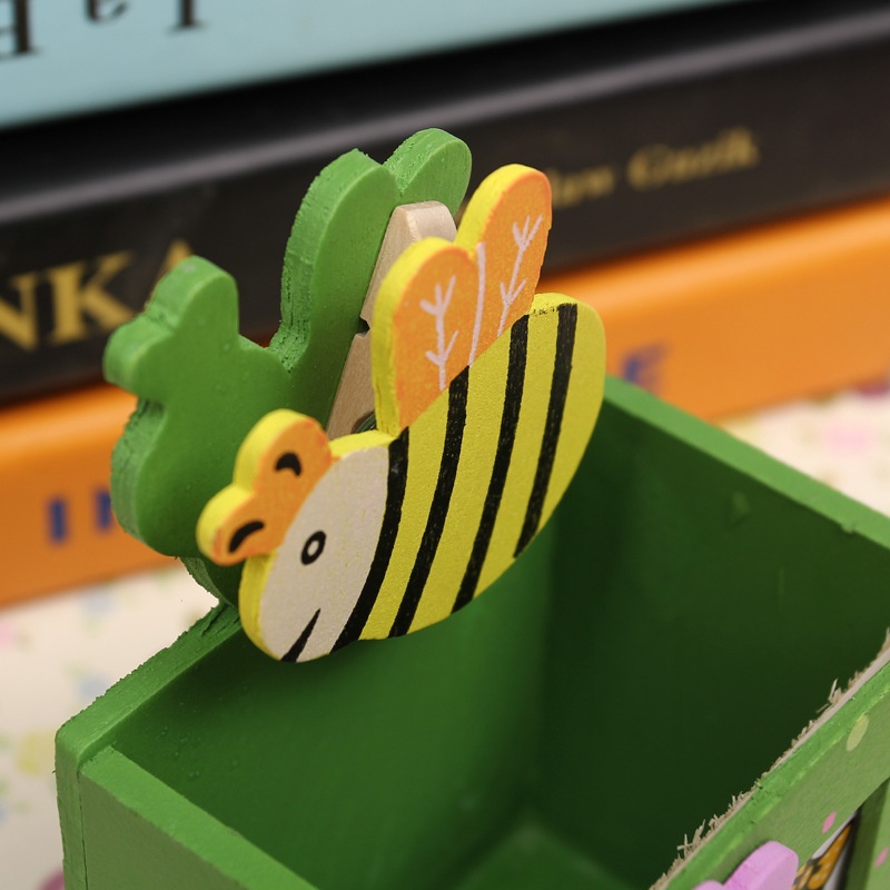 Bee Pen Holder Cute Cartoon Creative Multifunctional Learning Wooden Pen Holder With Clip Can Print T