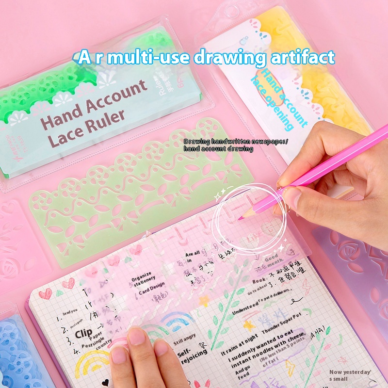 High-value Handbook Lace Ruler Student Multi-functional Hand-copiedspaper Flower Ruler Painting Ruler Hollow Painting Template