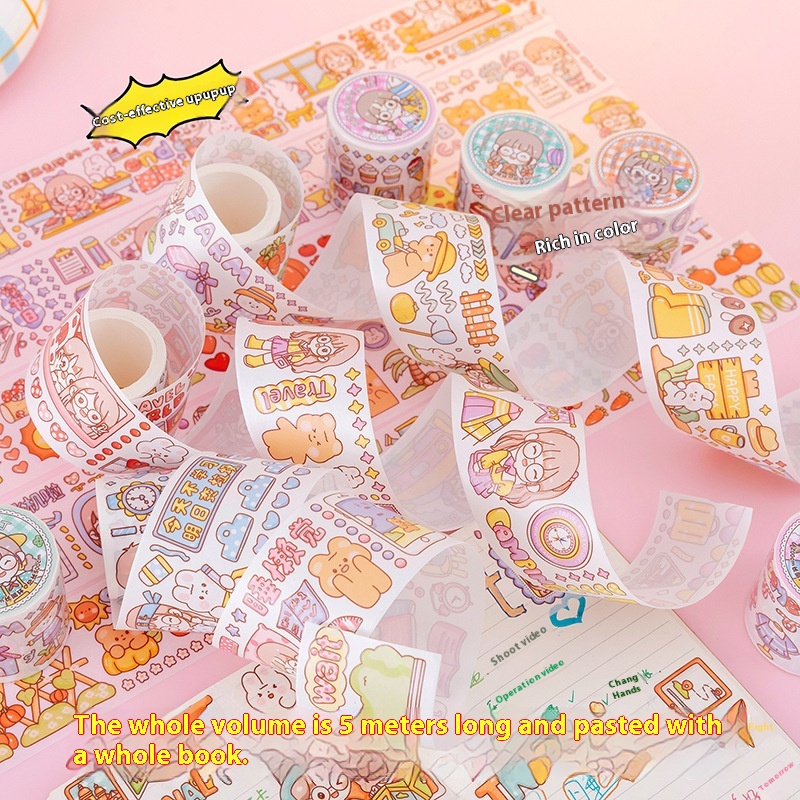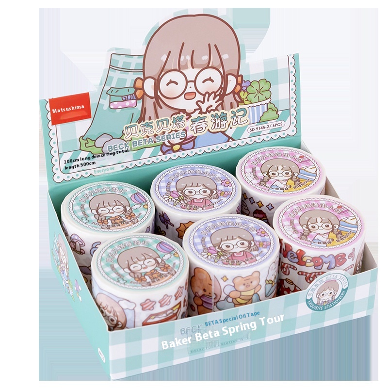 Baker Beta And Paper Tape Collection Sticker Set5 MLong Full Roll Special Grapefruit Milk Tea Original Illustration Notebook