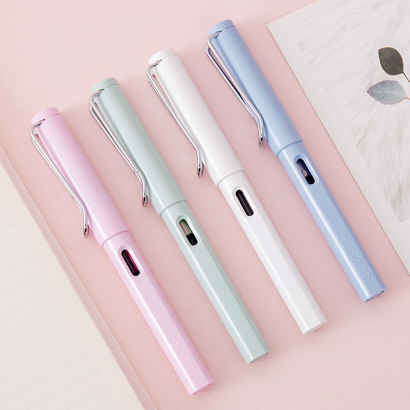 Macaron Transparent Positive Posture Student Plastic Fountain Pen With Replaceable Ink Sac Ballpoint Pen With Printed Set Gift